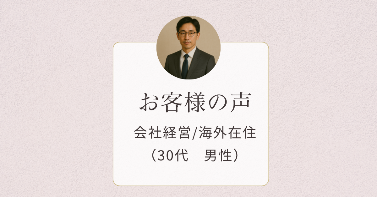 【お客様の声】コンサルティング会社経営(30代・男性・海外在住)